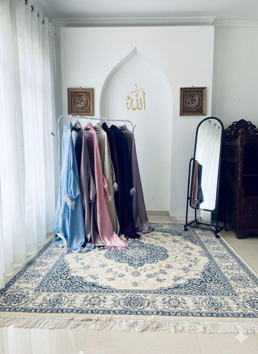 Our commitment to quality is reflected in every detail. Crafted with intention, every Ibaada dress is made from luxurious Japanese silk.